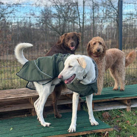Auch im Kontakt mit anderen Hunden zeigt sich Bueno insgesamt alters- und typgerecht. Mit netten Hündinnen und sehr souveränen Hunden kommt er gut zurecht. In dynamischen Gruppensituationen – etwa wenn neue Hunde dazukommen oder wenn Futter bzw. soziale Ressourcen eine Rolle spielen – kann es noch zu Auseinandersetzungen kommen. Das ist bei einem jungen, noch nicht vollständig gereiften Rüden nicht ungewöhnlich und ein Bereich, in dem er weiterhin Anleitung, klare Rahmenbedingungen und überschaubare Settings braucht.